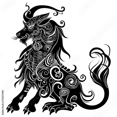 Fototapeta premium Silhouette Xiezhi or haetae the Mythical Creature ancient beast black color only
