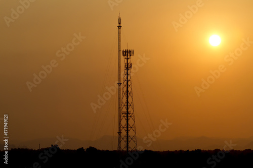 Fototapeta premium Silhouetted Antennas in the sunset