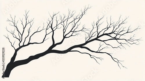 © Irina, Obraz premium Silhouetted bare tree branches against a pale gray winter sky create a striking contrast to nature's calm