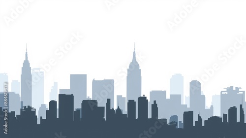 © Iswanto, Naklejka premium Silhouetted Cityscape Against a Pale Sky