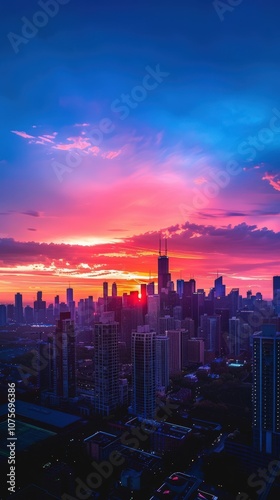 Fototapeta premium Silhouetted Cityscape - Iconic Skyline at Sunset