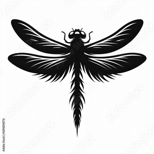 Obraz premium Silhouetted dragonfly insect silhouette with intricate wing details for...