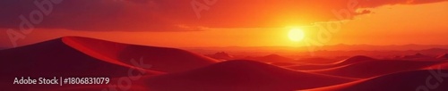 © Pornchai, Fototapeta premium Silhouetted dunes against a blazing sunset sky , scenic, red, day