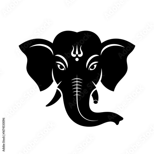 © rifqi, Fototapeta premium Silhouetted Elephant Head, Hindu Deity, Ganesh Icon, Stylized Design.
