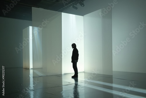 © Mandeep, Fototapeta premium Silhouetted Figure in Modern Art Gallery