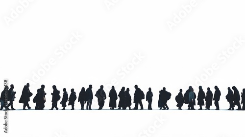 © Berkah, Naklejka premium Silhouetted figures form a long line against a white background