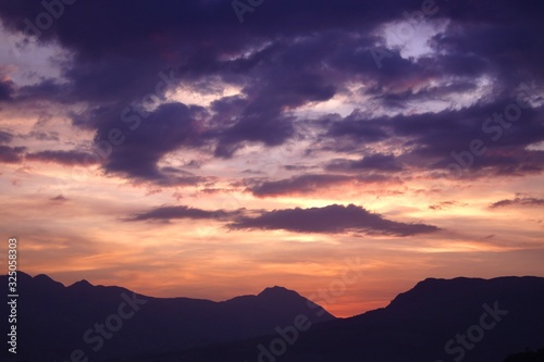 Obraz premium Silhouetted mountains and a brilliant sunset