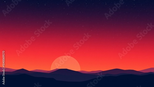 © Habibur Rahaman, Fototapeta premium Silhouetted mountains at sunset with starry sky