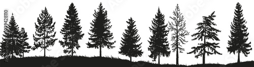 © umut hasanoglu, Fototapeta premium Silhouetted pine trees create a striking contrast against a white background.