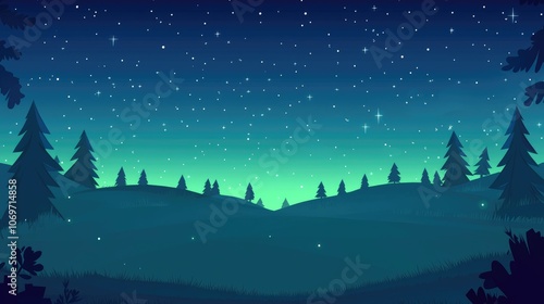 Fototapeta premium Silhouetted Pine Trees Under a Starry Night Sky