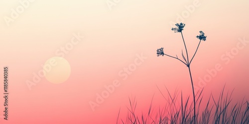 © novian, Obraz premium Silhouetted plant against a sunset sky