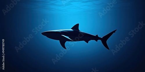 Obraz premium Silhouetted Shark Swimming in Blue Water