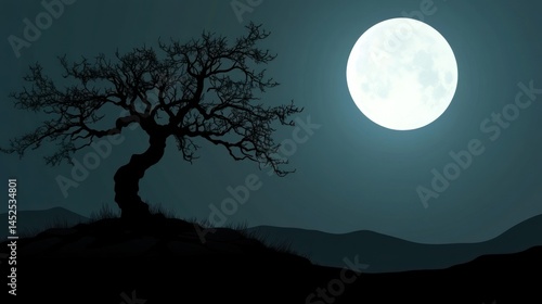 © adiar, Naklejka premium Silhouetted tree under a full moon at night