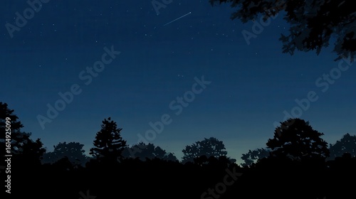 © Ariestia, Fototapeta premium Silhouetted trees against a night sky dotted with stars.