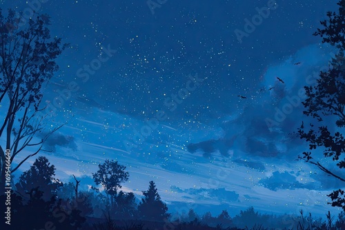 © Ione, Fototapeta premium Silhouetted trees against a twilight, starry sky