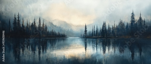 Fototapeta premium Silhouetted Trees Reflected in a Still Lake at Dawn