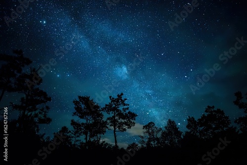 © Tarakan, Fototapeta premium Silhouetted trees under a vibrant night sky filled with stars and the Milky Way