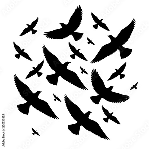 © arraygraphic1, Obraz premium Silhouettes flying birds set on white background vector illustration