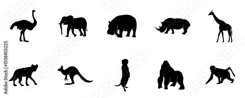 © Kristian, Naklejka premium Silhouettes of Animal icons set. vector