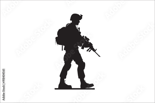 © MdNayab, Fototapeta premium Silhouettes of Army Combat Soldiers, soldiers Vector Silhouette. Veteran Soldier vector.