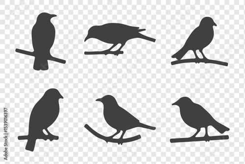 © Agastya 897, Fototapeta premium Silhouettes of birds doodle set. Black collection design animal cartoon for nature. Element graphic drawing sketch and isolated white background. Abstract decoration symbol.
