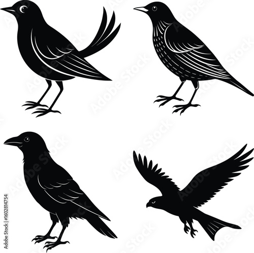 Obraz premium Silhouettes of birds sitting on wires. Vector illustration