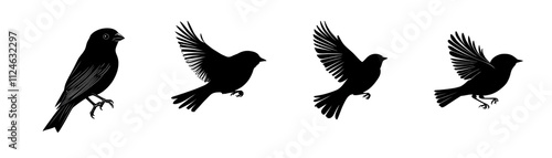 © Dorido, Fototapeta premium Silhouettes of black birds in various flying poses against a white background.