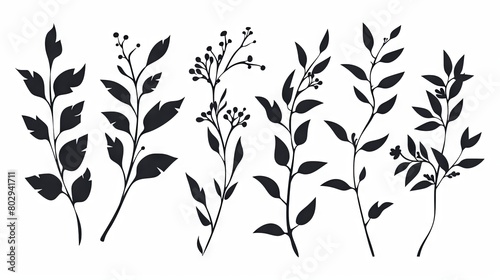 Naklejka premium Silhouettes of botanical elements in minimalistic black and white design