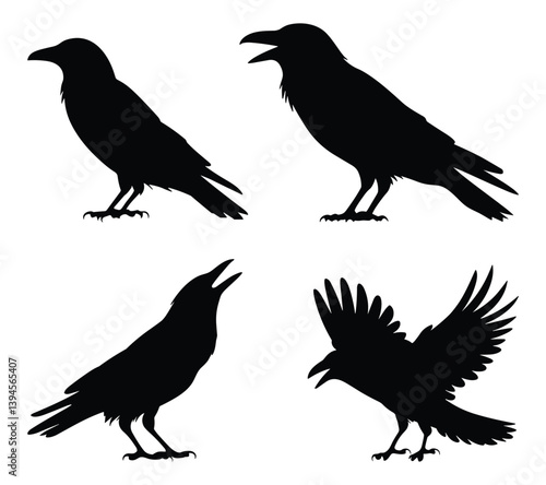 © Vector Vander, Obraz premium Silhouettes of crows in various poses. vector illustration.