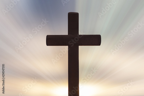 Naklejka premium Silhouettes of crucifix and colourful sky background