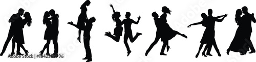 Obraz premium Silhouettes of dancing couples in joyful and expressive poses representing...