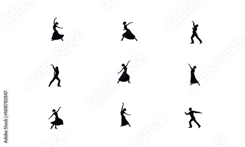 © Zargham, Naklejka premium Silhouettes of dancing people in various energetic poses on white background