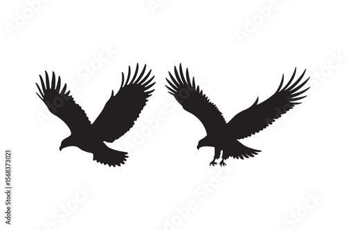 © Sadek, Obraz premium Silhouettes of eagles in flight against a white background