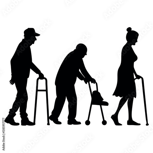 © MohammadMonirul, Obraz premium -silhouettes-of-elderly-people-walking--sitting--a (1).eps