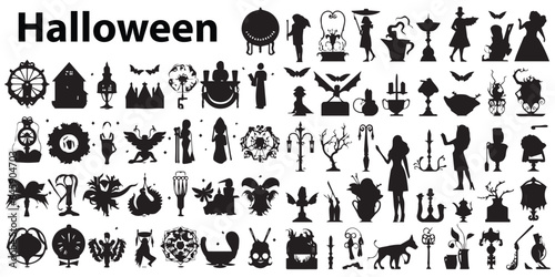 © Ridoy-Art , Naklejka premium Silhouettes of Element of Halloween black vector illustration