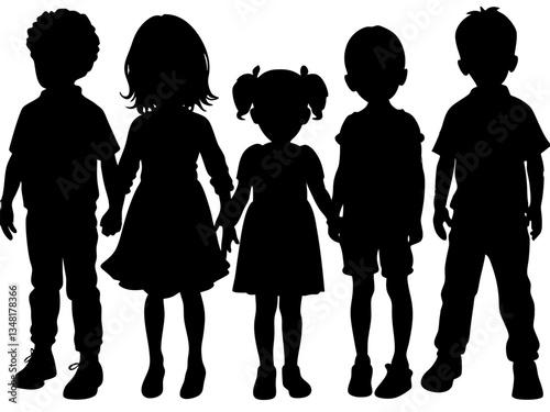 Fototapeta premium Silhouettes of Five Children Standing Together