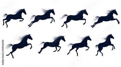 Naklejka premium Silhouettes of Horses in Motion, White Background