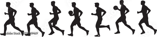 © MstAngor, Obraz premium Silhouettes of man and woman playing sports with soccer and basketball action.