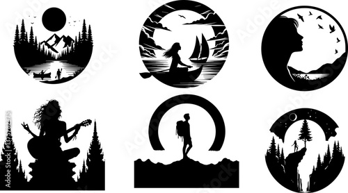 Naklejka premium Silhouettes of Nature and Adventure in Black and White