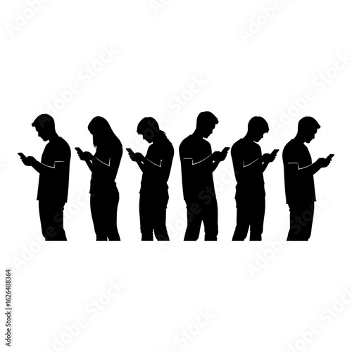 Fototapeta premium Silhouettes of people engrossed in their smartphones