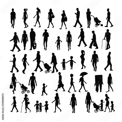Obraz premium "Silhouettes of People in Various Poses – Walking, Standing, Talking, Urban...