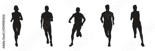 Obraz premium Silhouettes of People Jogging and Running on White Background