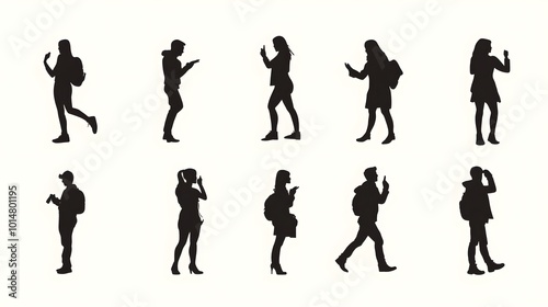 © Jojo*, Naklejka premium Silhouettes of People Using Smartphones While Walking