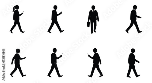 Fototapeta premium Silhouettes of people walking in various poses simple black and white design