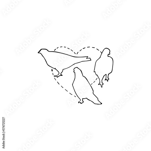 Fototapeta premium Silhouettes of pigeons, heart illustration vector icon