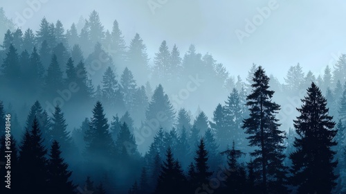 Obraz premium Silhouettes of Pine Trees in a Foggy Forest
