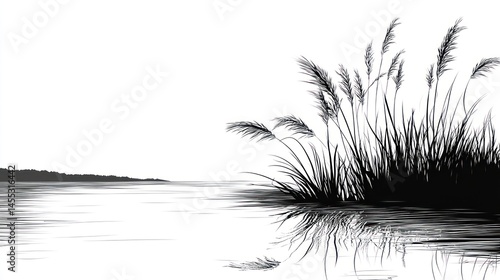 © Almahyra, Obraz premium Silhouettes of reeds by water