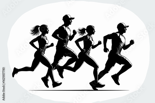 Obraz premium Silhouettes of running girls and people vector illustration