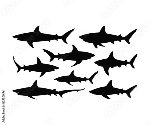 © Shown, Fototapeta premium Silhouettes of sharks on white background