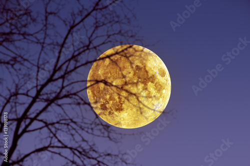 Obraz premium Silhouettes of tree branches and Moon on evening sky.
